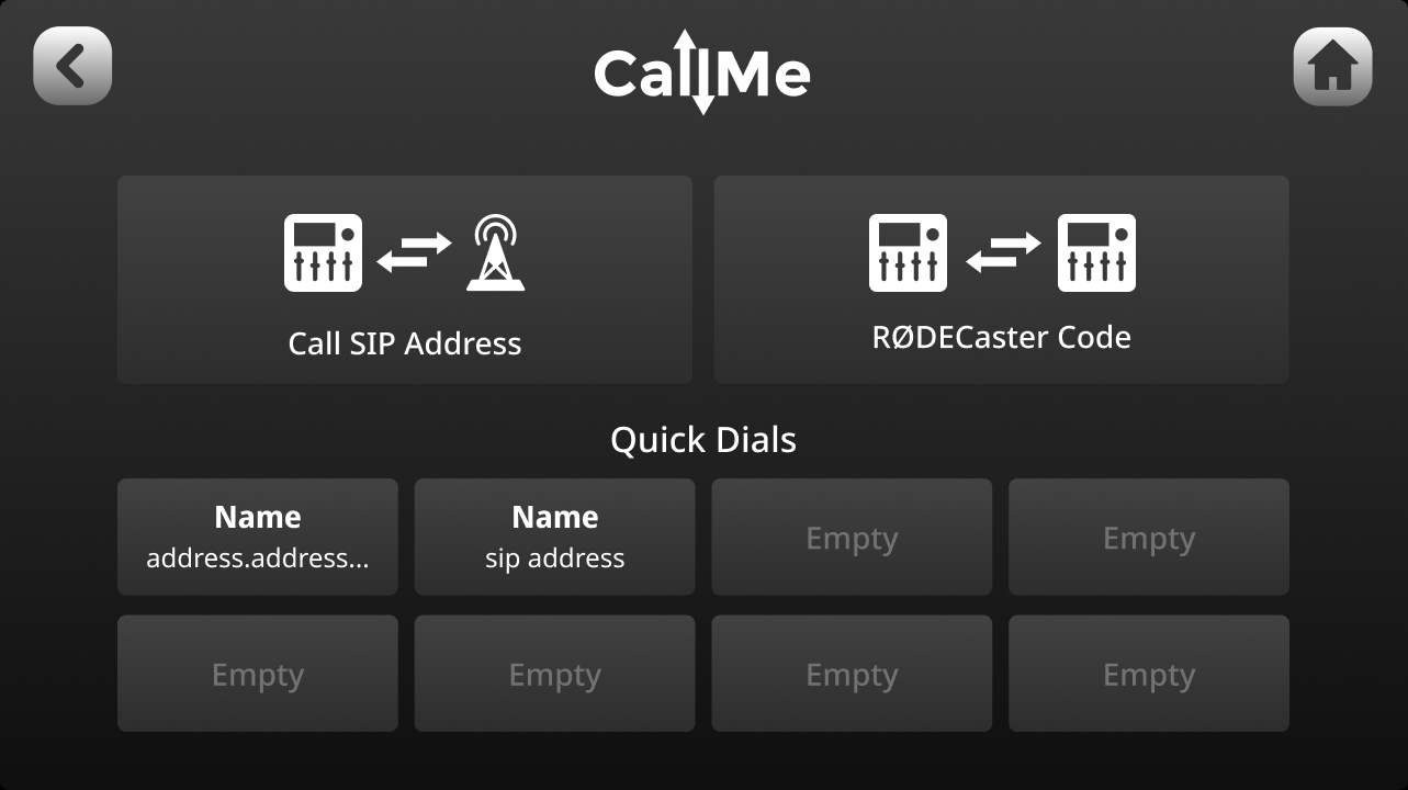 Select your CallMe channel and select "CallMe Configuration". Here you can make a call out to a SIP Address or another RØDECaster.