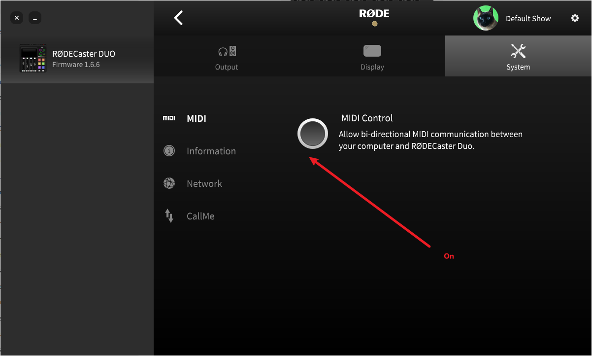 Make sure MIDI is enabled on your RØDECaster (see previous section)