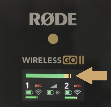 - Make sure the Wireless GO II RX is set to merge mode by pressing and holding the 'dB' and '1/2' button until you only see one audio meter bar on the top of the screen.