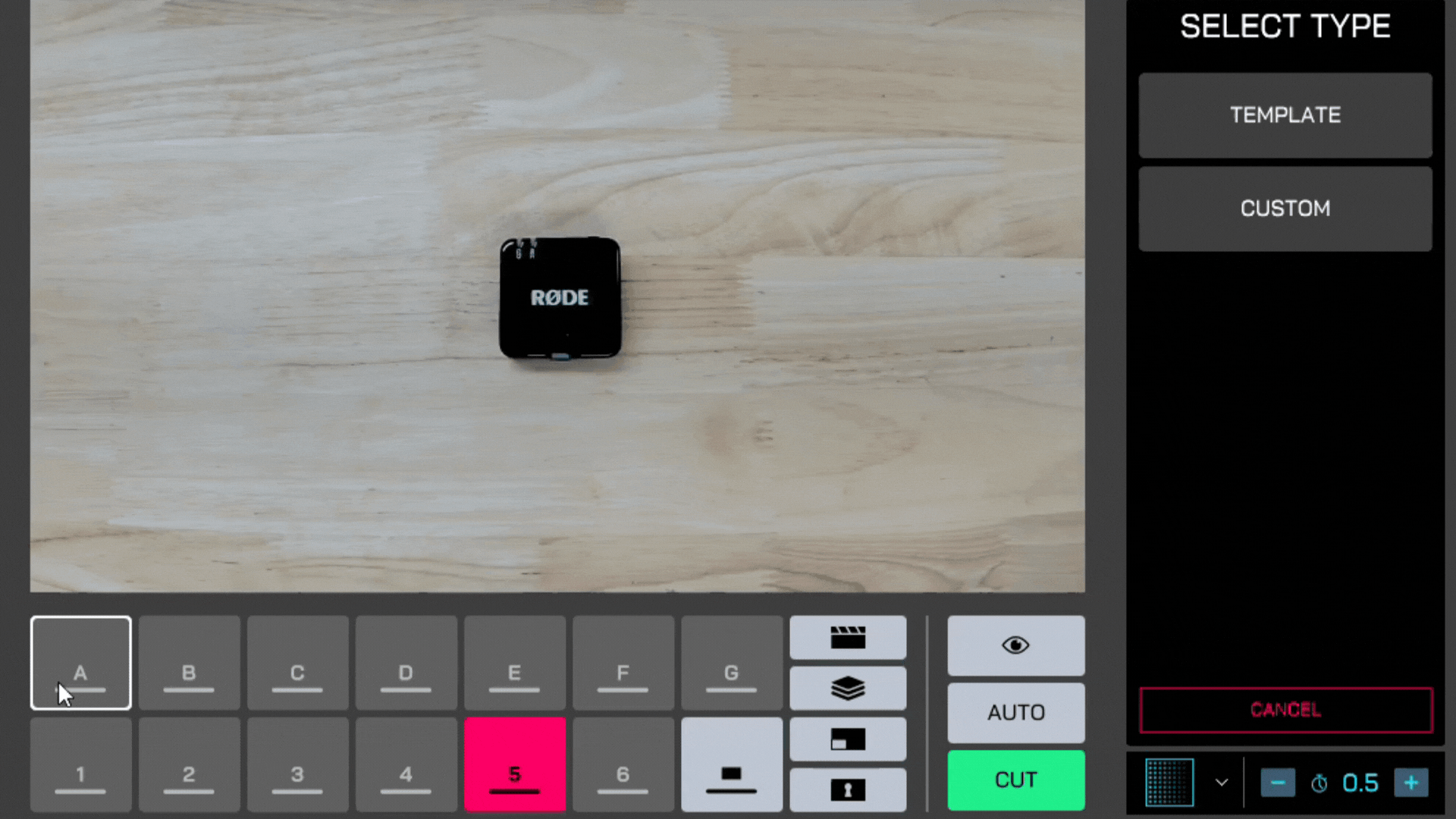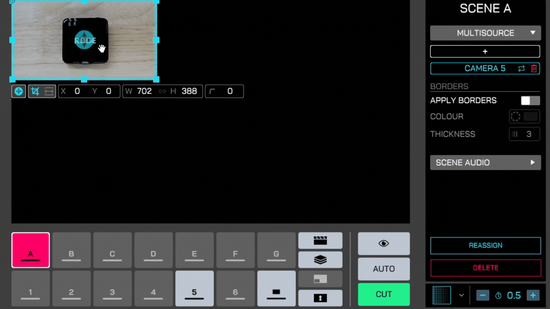 En la aplicación RØDECaster, crea una Escena personalizada y agrega la Cámara con el encuadre deseado como fuente.