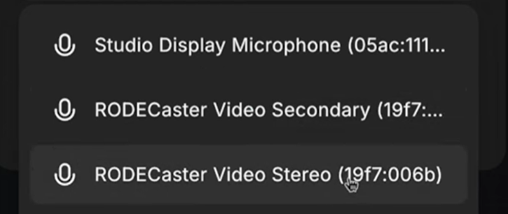Entrada de Audio (Micrófono): Selecciona RØDECaster Video Stereo