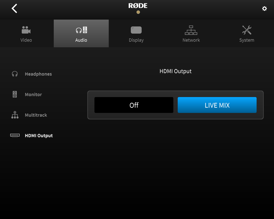Al conectar la salida HDMI de tu RØDECaster Video/RØDECaster Video S a una fuente, como una pantalla o tarjeta de captura, es posible que inicialmente no recibas ningún audio junto con la señal de video.